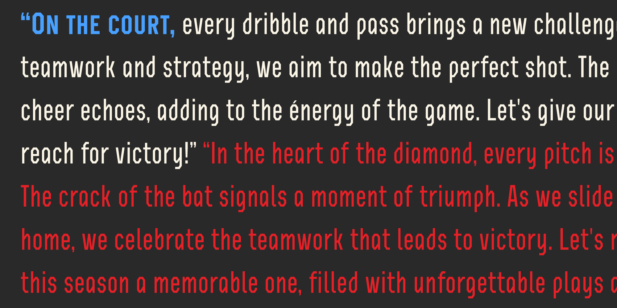伝統的なスポーツリーグに触発されたスタイルに、オプティマイズを重ねたフォント